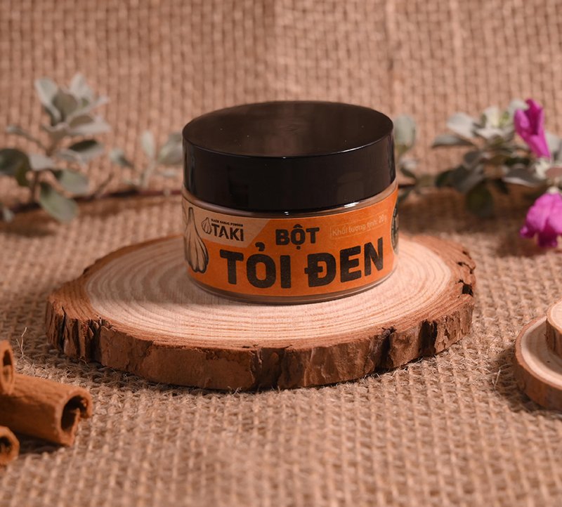 TAKI Black Garlic Powder is made from 100% black garlic, with no additives or preservatives. NK VIET NAM COMPANY produces black garlic powder using a fully closed production process at its factory. Fresh garlic is fermented for 30–40 days, peeled, dried, and finely ground into black garlic powder. The result is a completely natural and pure product. How can black garlic powder be used?