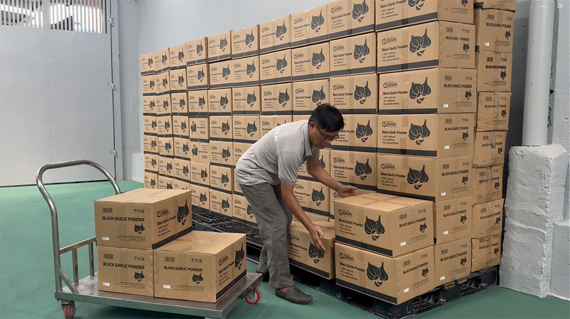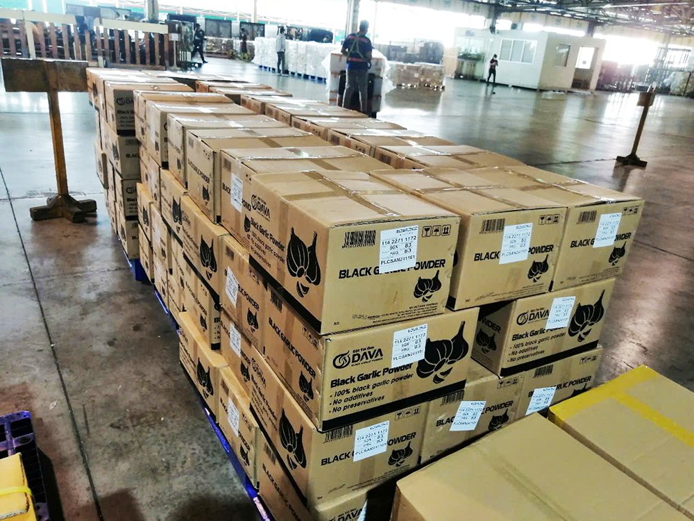 NK VIET NAM COMPANY's Black Garlic Powder, under the DAVA brand, is at Tan Son Nhat Airport, preparing for air export to Europe.