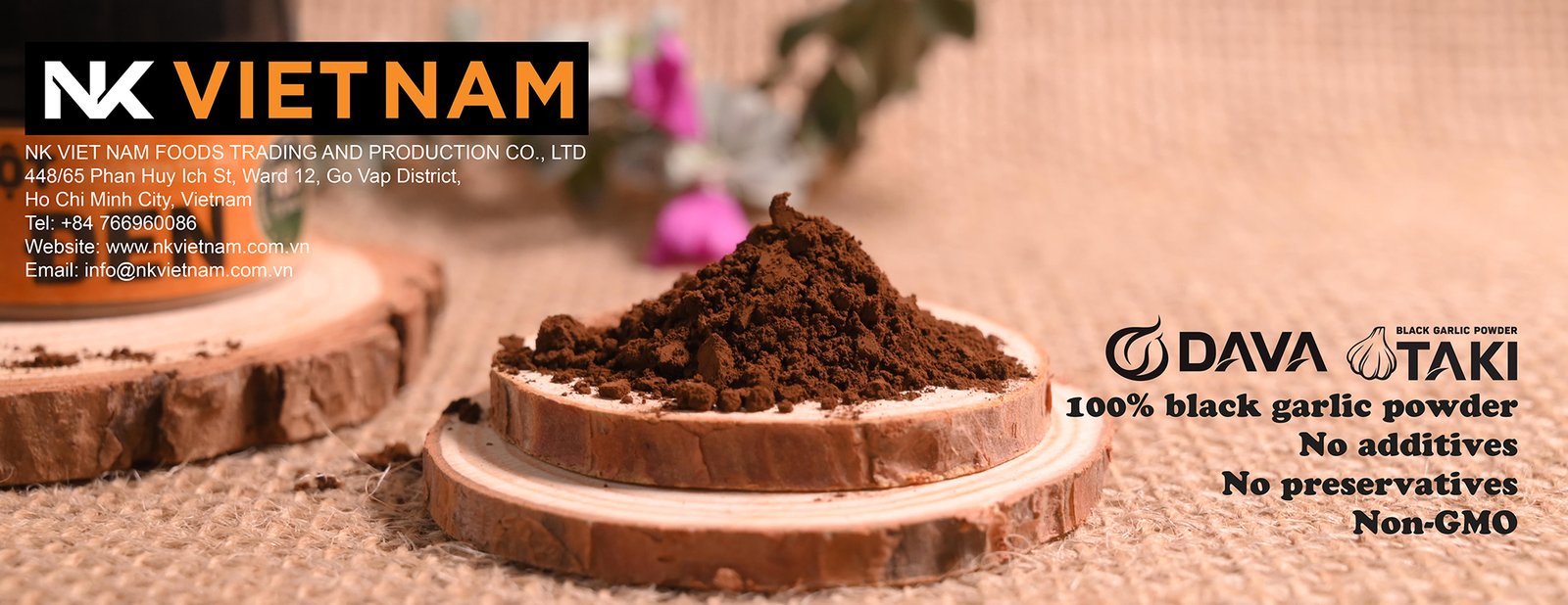 - Since 2017, NK VIET NAM COMPANY has been exporting large quantities of Black Garlic Powder under the brands DAVA and TAKI to the U.S. and European markets. Our partners use black garlic powder to manufacture medicines, functional foods in the form of capsules and tablets, and to produce seasonings such as black garlic salt, black garlic sauce, and black garlic seasoning seeds. We are pleased to offer consultation and supply raw materials to companies interested in developing products in this field.